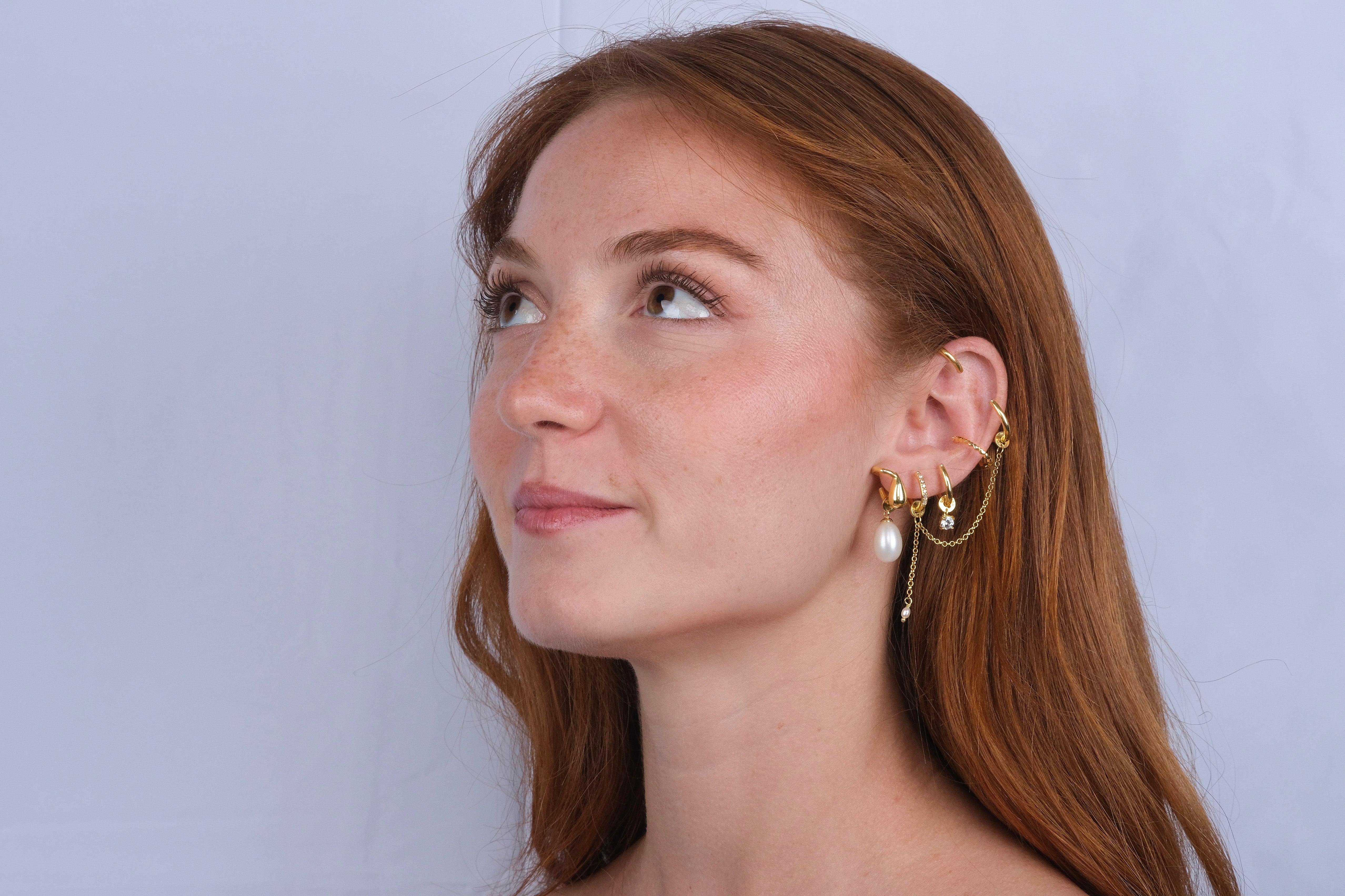 Choose from gold- or silver-plated models and embellish them with sparkling studs, pendants, and pearls. The trendy ear cuffs from the Multi Hoops collection are the perfect solution for those seeking a sophisticated and customizable style, suitable for any occasion.