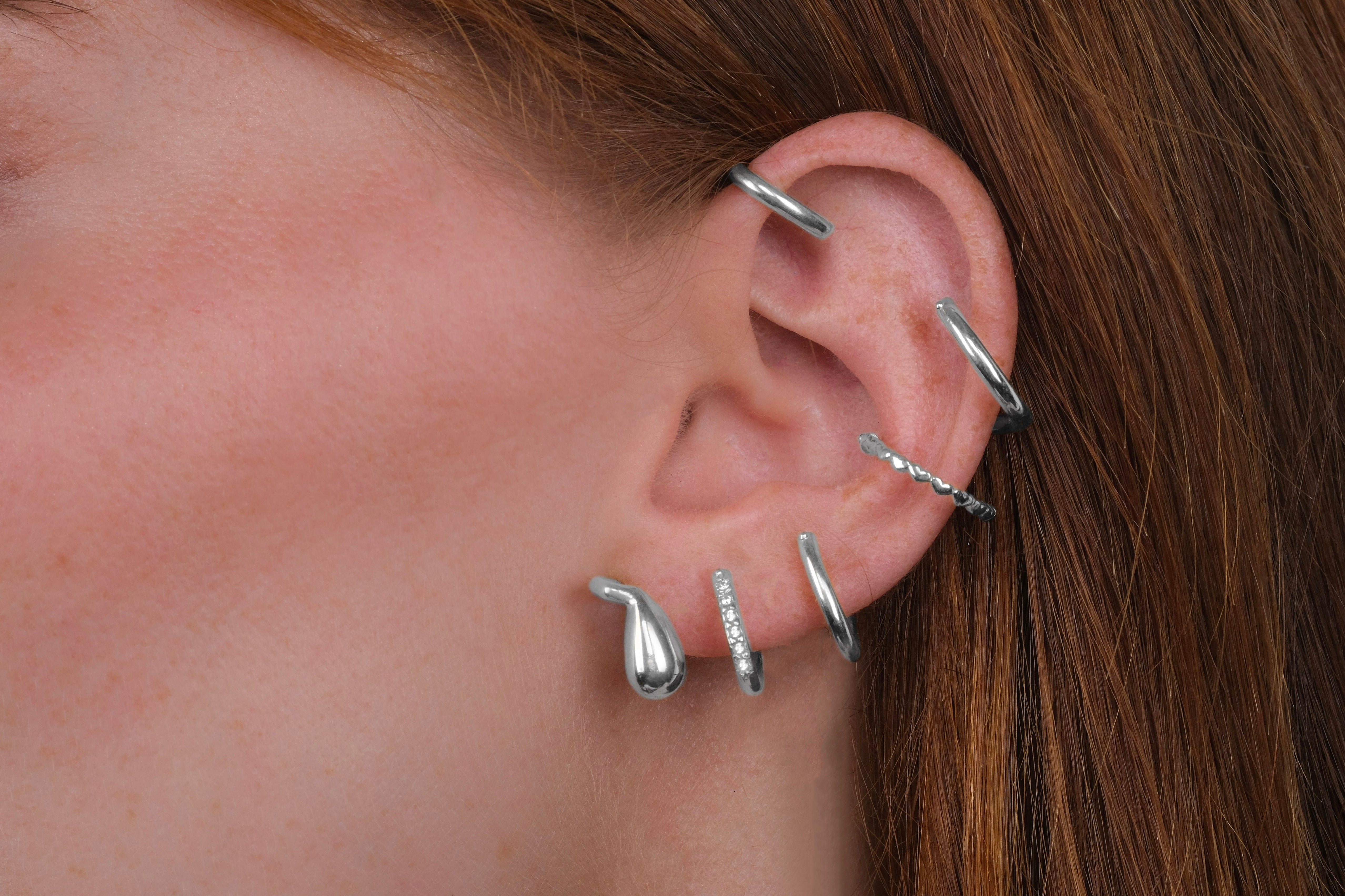 Handmade pierced earrings: discover the Bi Silver Multi-Hoop Ear Cuff collection.