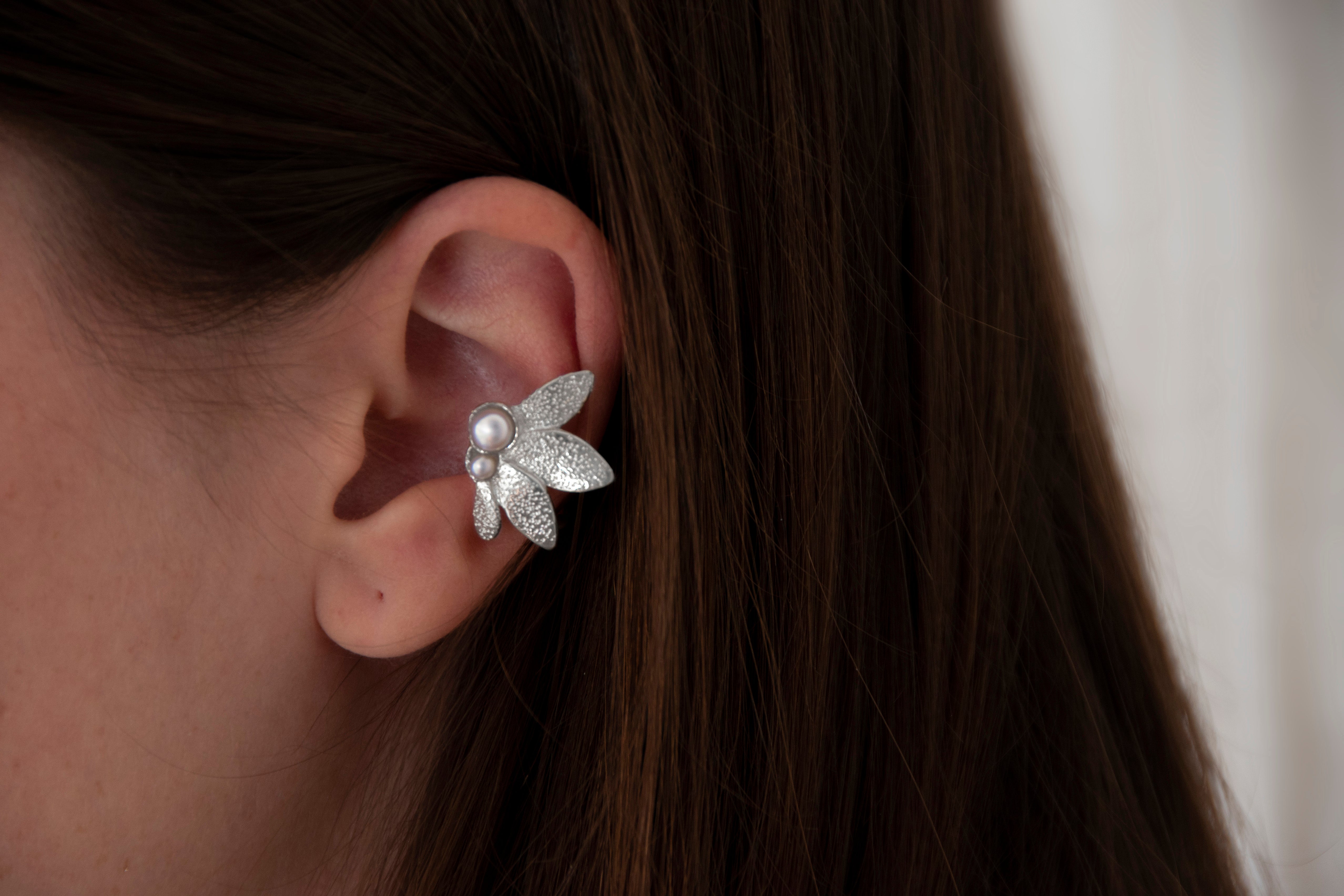 Some accessories are a true statement of personality, like Bi Silver's oversized ear cuffs. Choose your favorites from the many handcrafted styles, wear them, and show off your uniqueness. Oversized ear cuffs say a lot about you. How are you feeling today: romantic, unconventional, or bold? You could choose a style with flowers and delicate curves, or prefer a unique design that conveys your free spirit. It expresses who you are. Bi Silver's oversized pierced earrings capture everyone's attention.