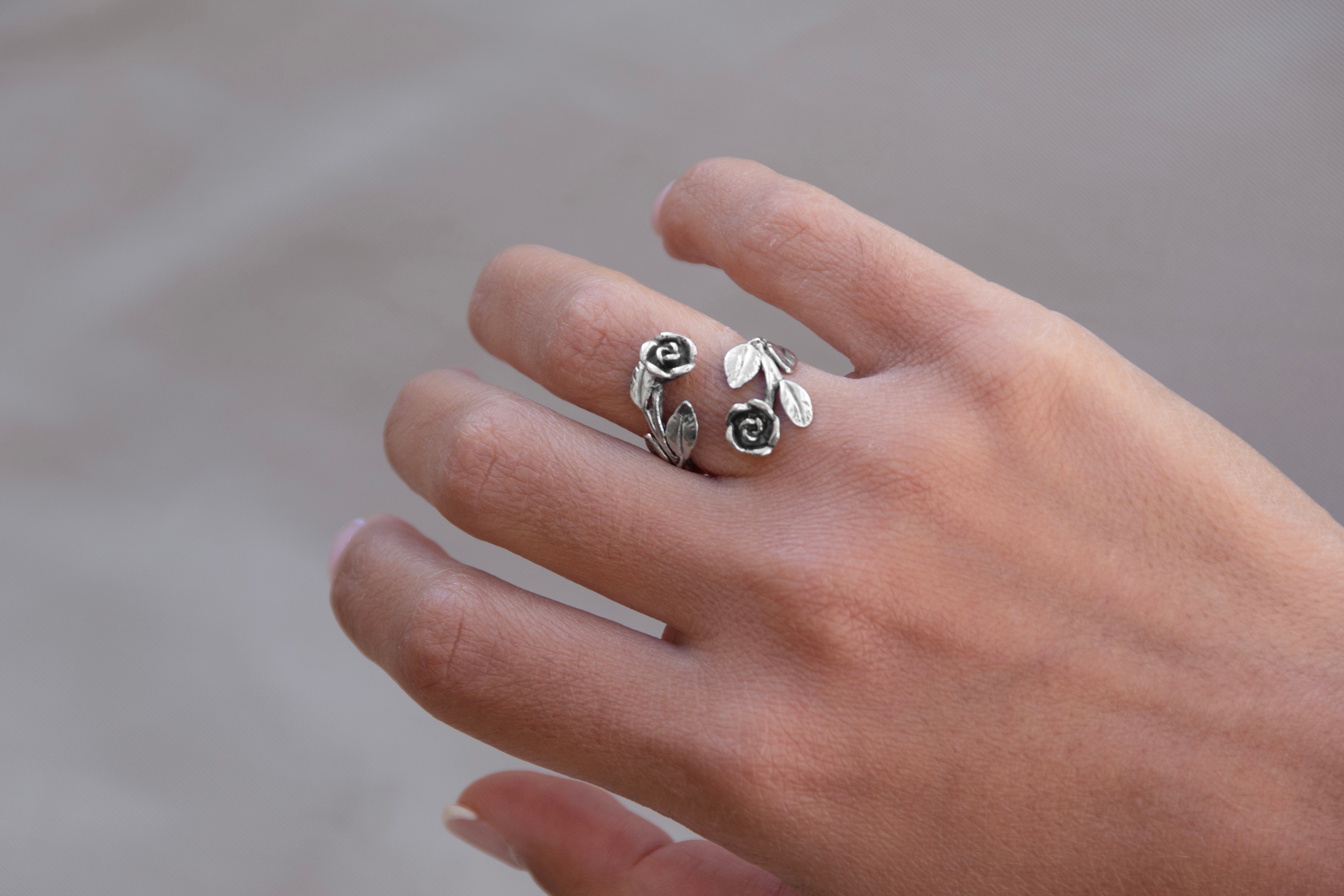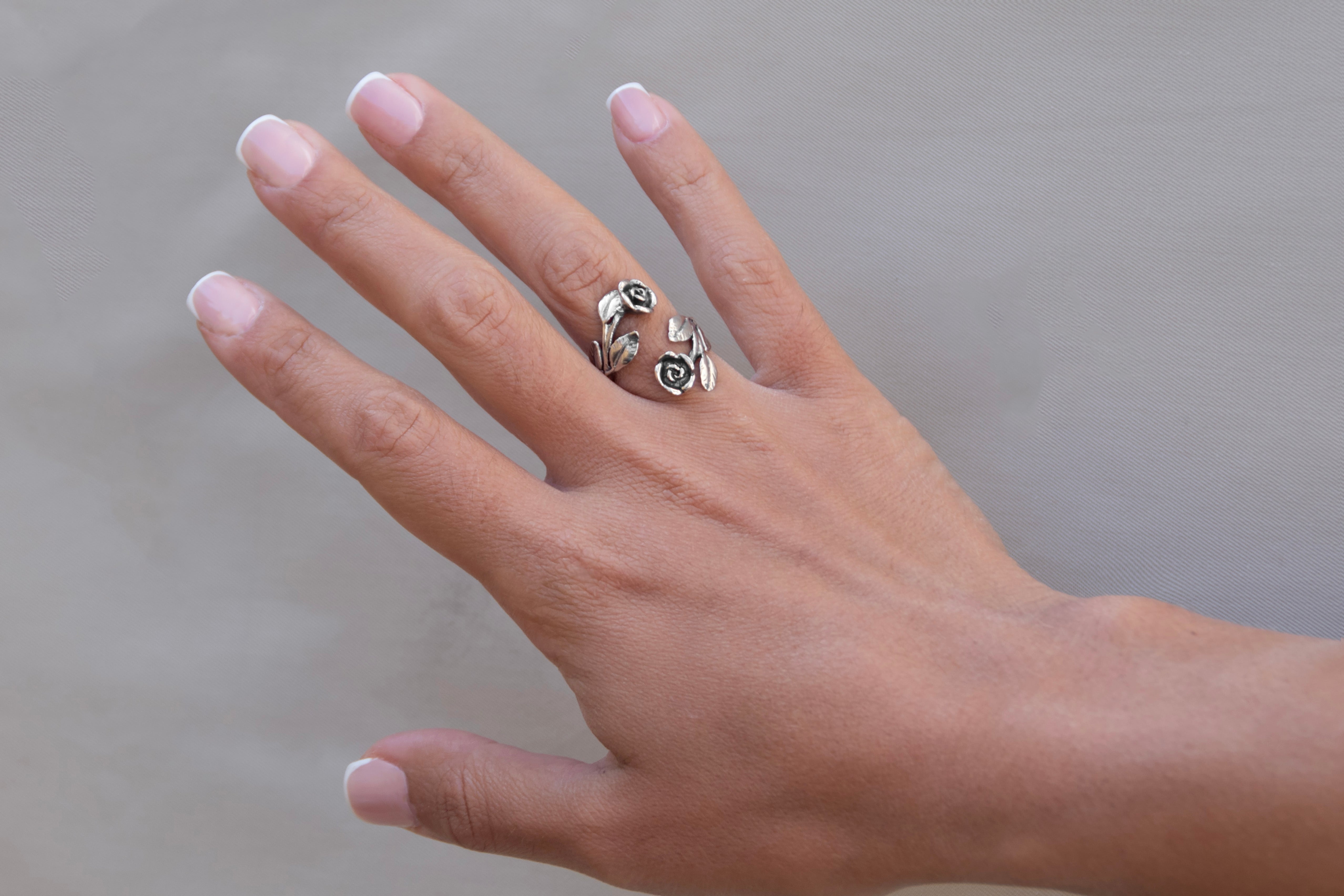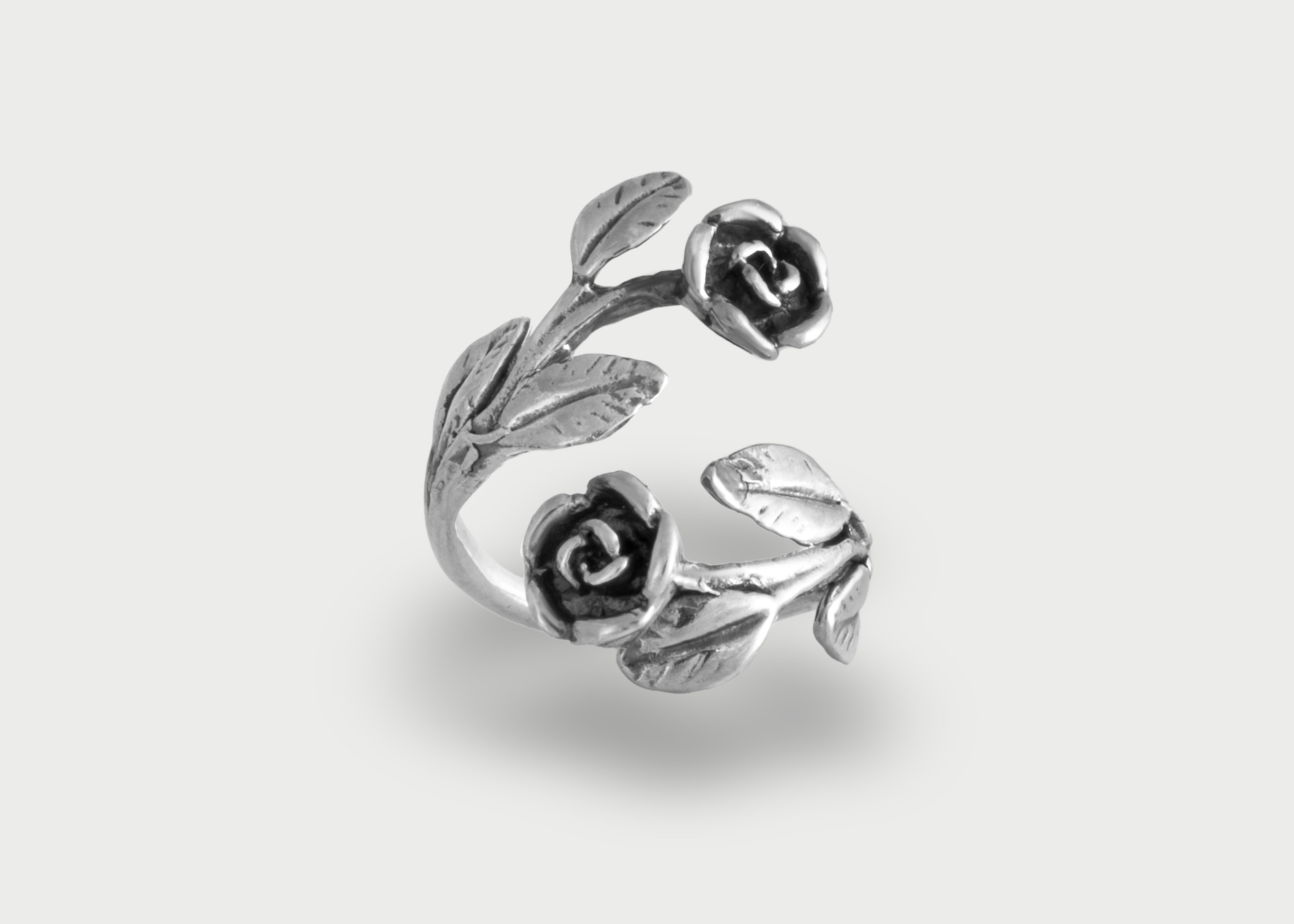 925 silver ring with two crossed roses made entirely by hand with the lost wax casting technique.