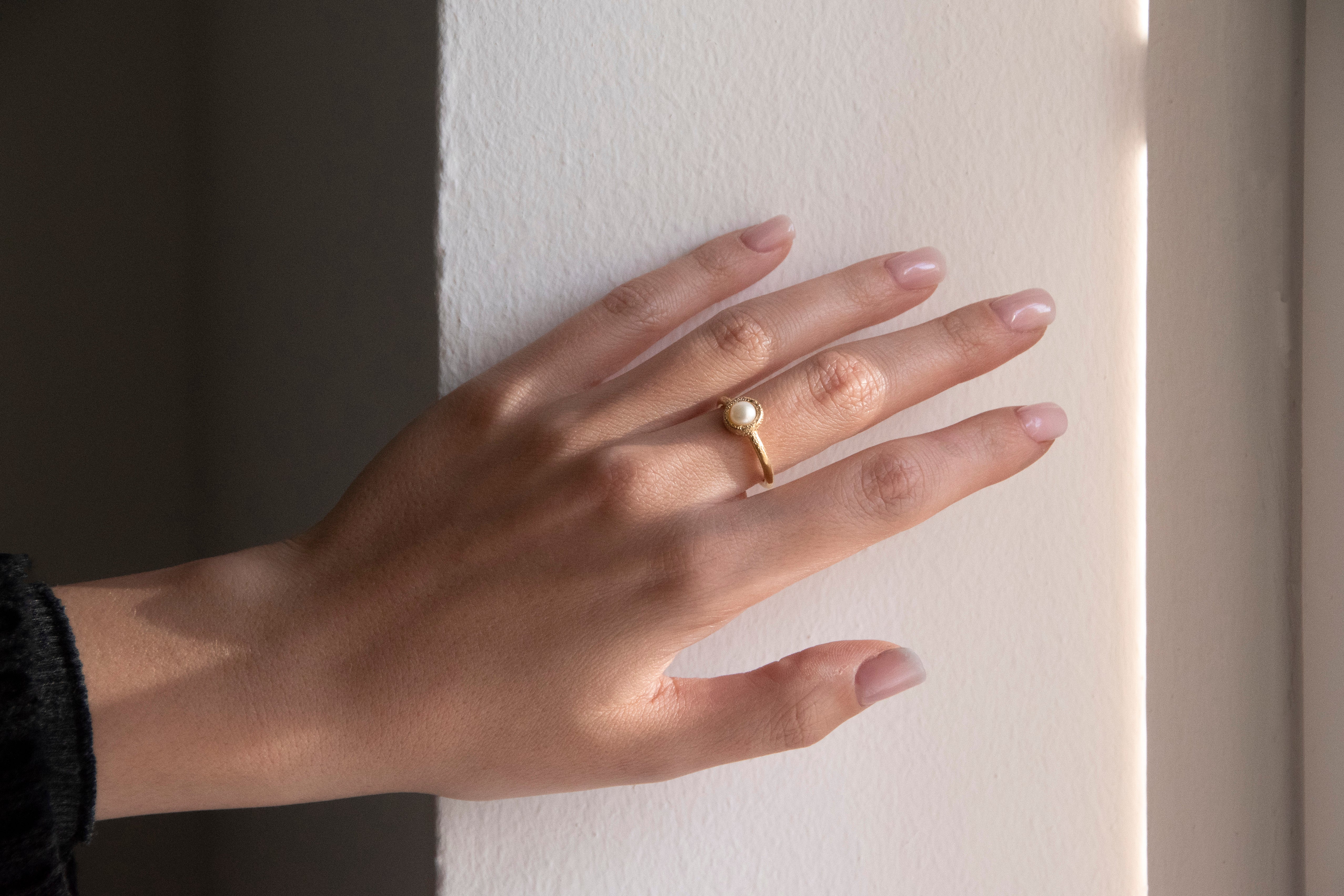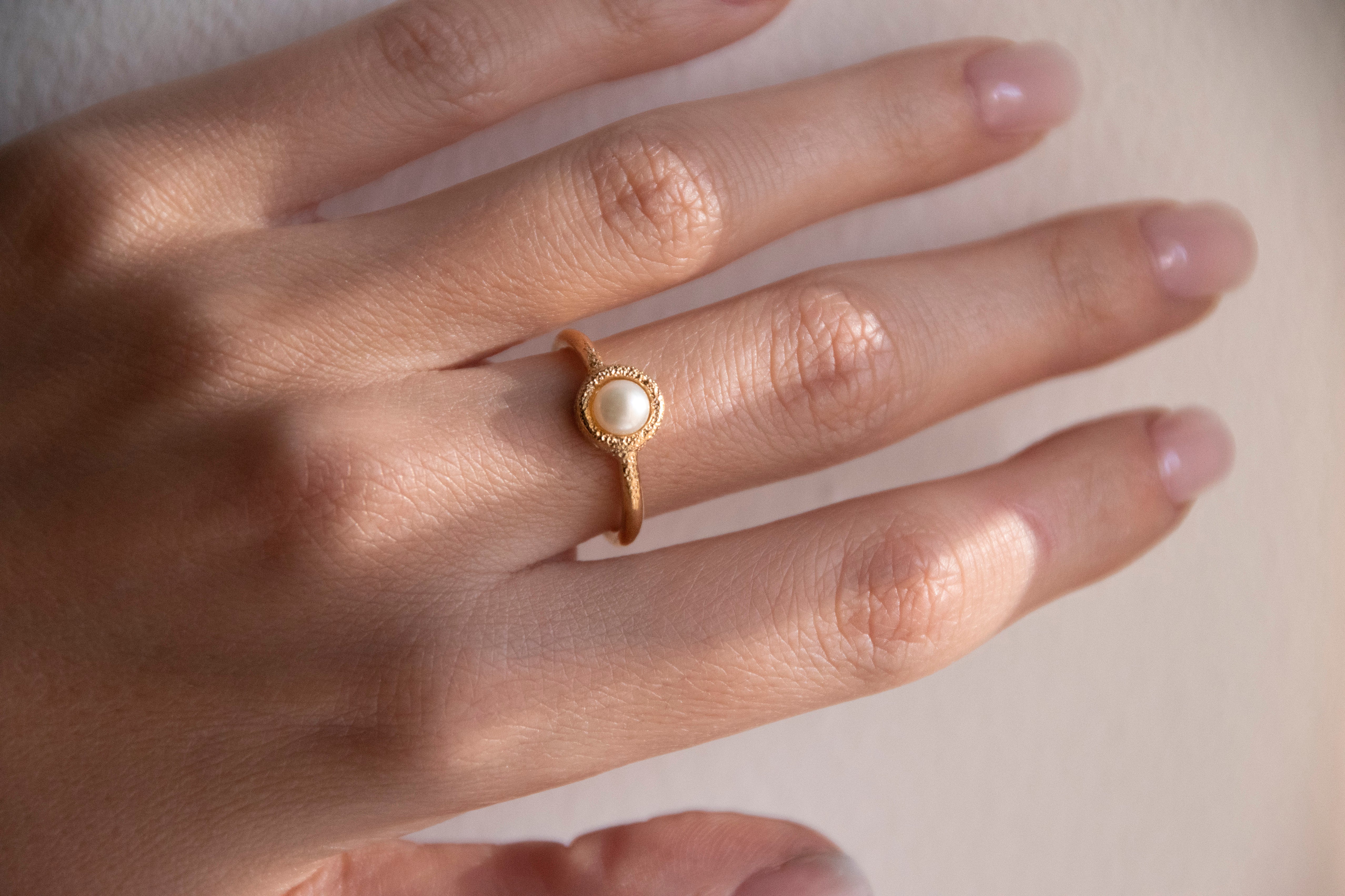 925 silver ring made entirely by hand using a process called lost wax casting, embellished with freshwater pearls.