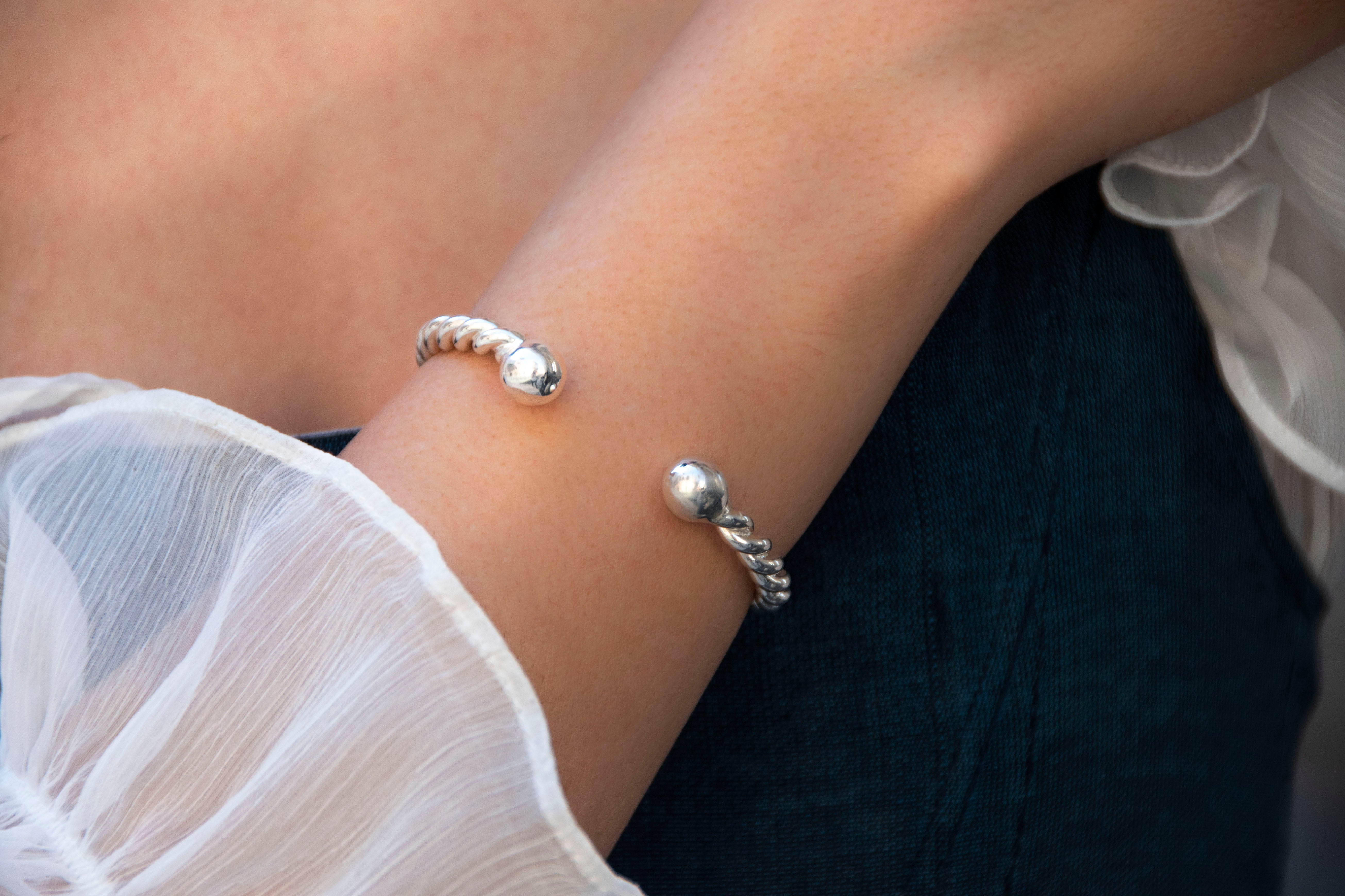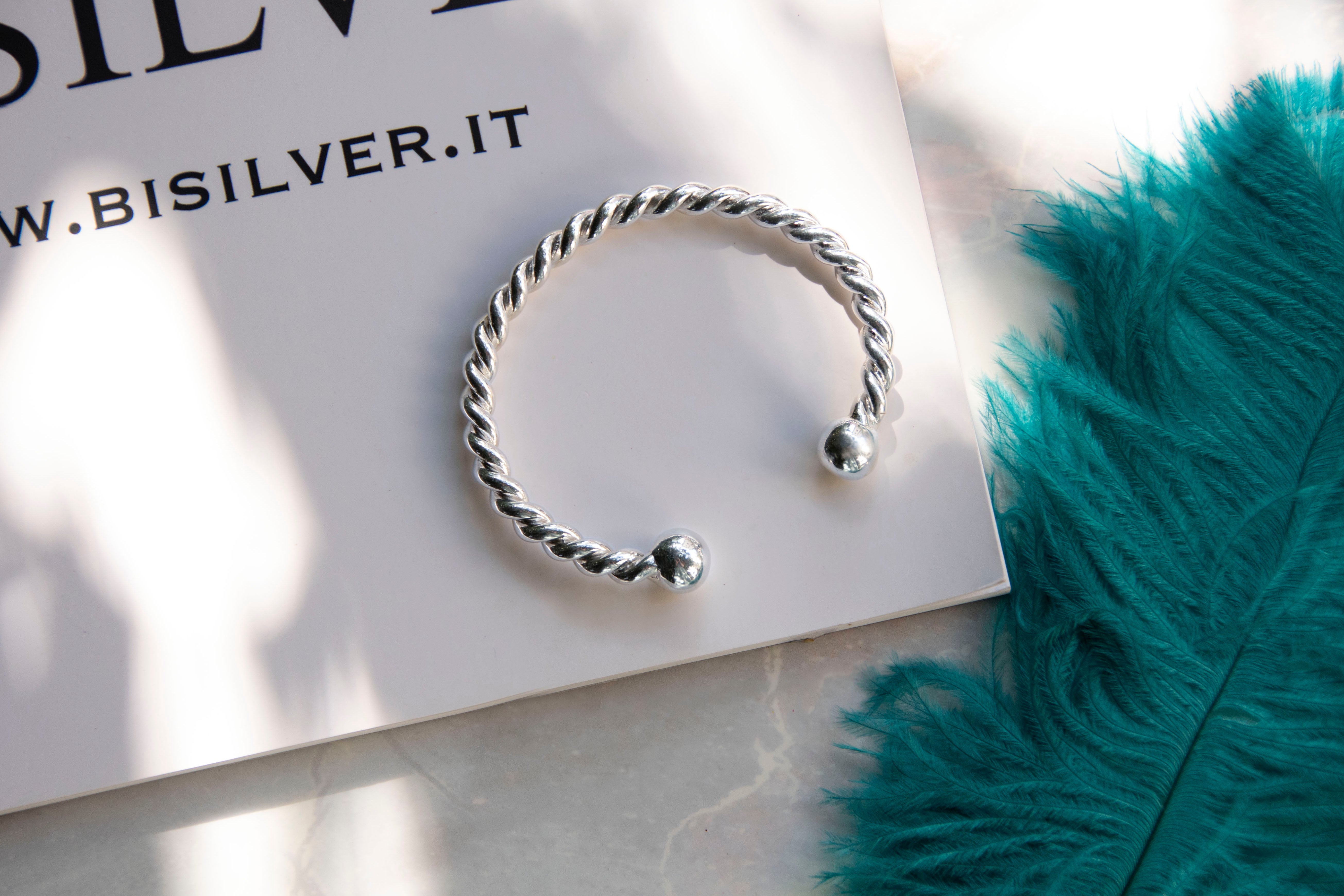 Rigid bracelet in 925 silver made entirely by hand using a process called "lost wax casting".