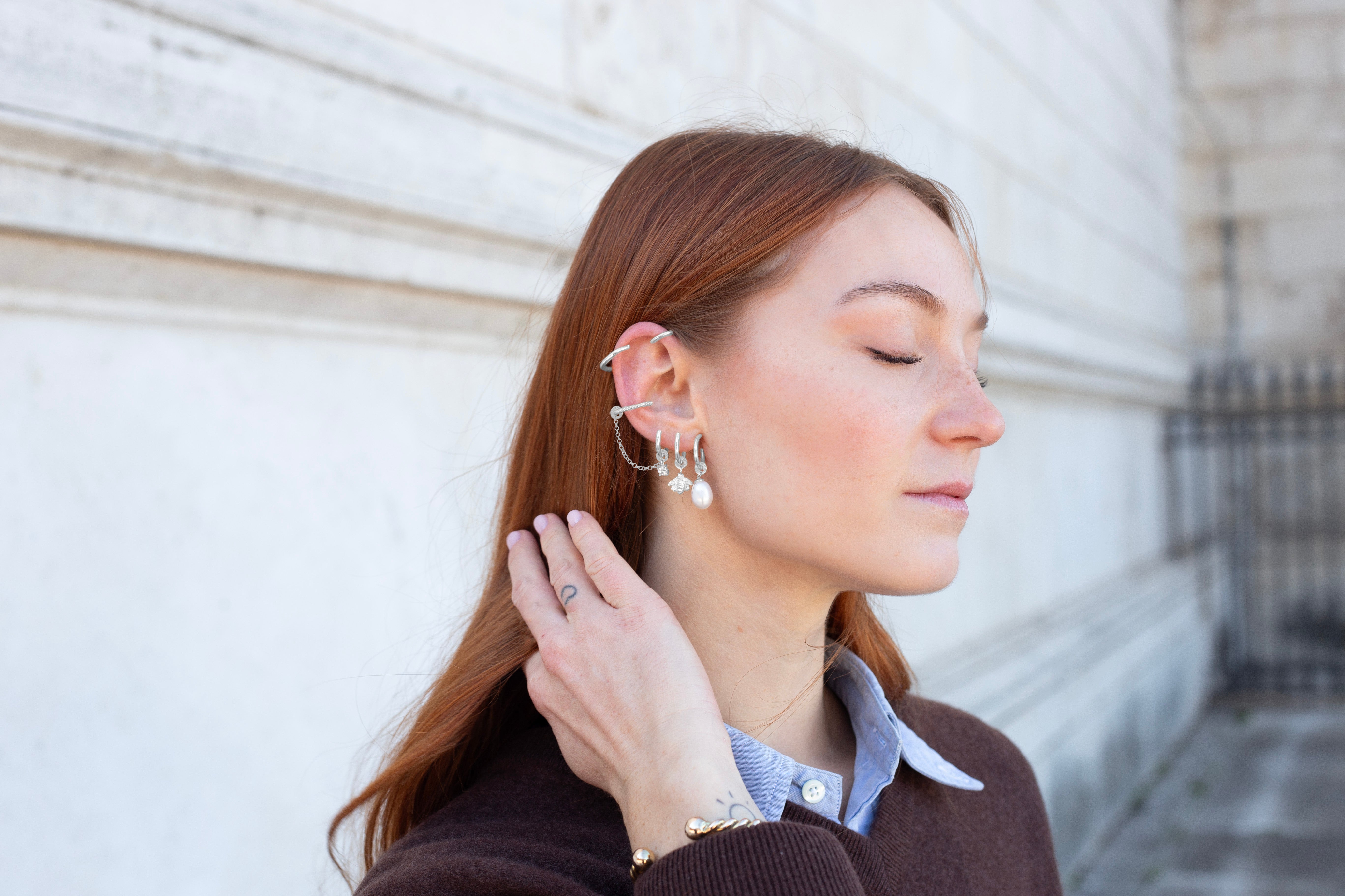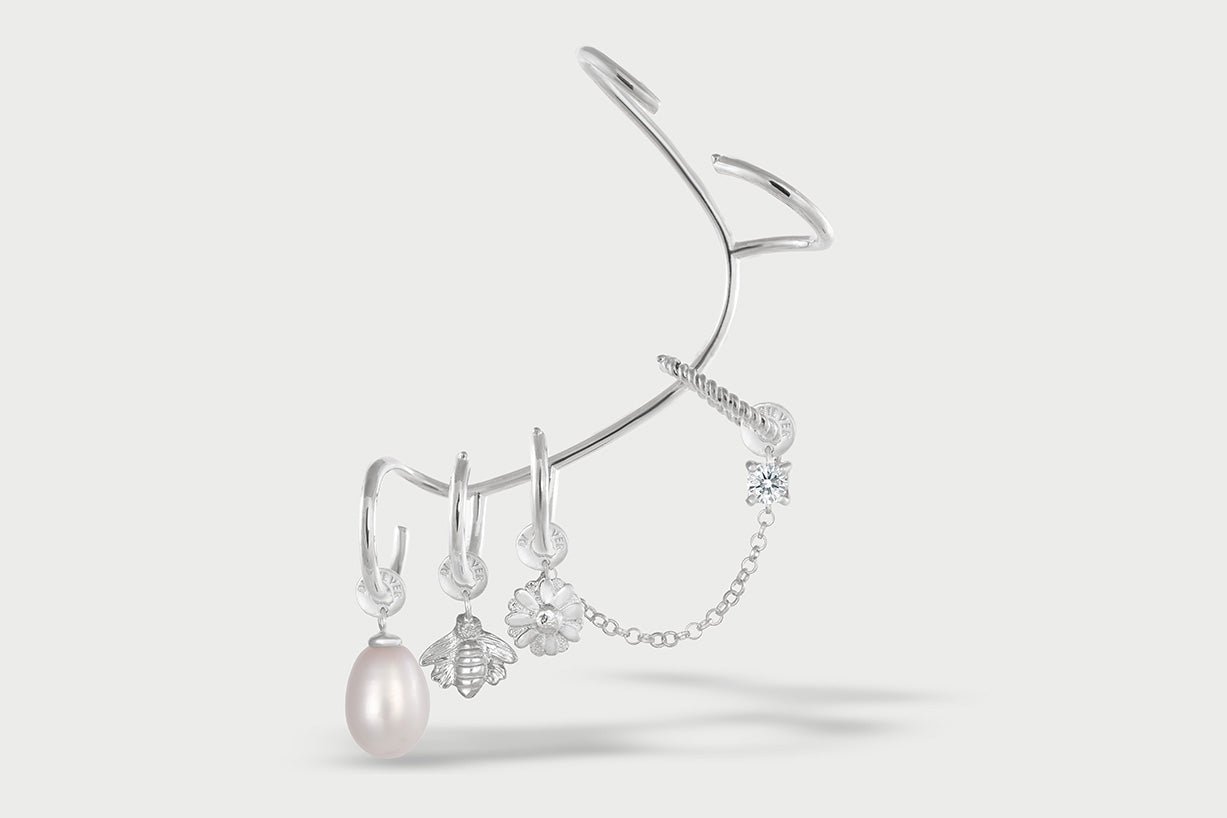 The Daisy Charm is designed to be worn with our Ear Cuff Multi Hoops .. You can easily insert it into the first five hoops of the Ear Cuff, personalising your look with a touch of sparkle.
