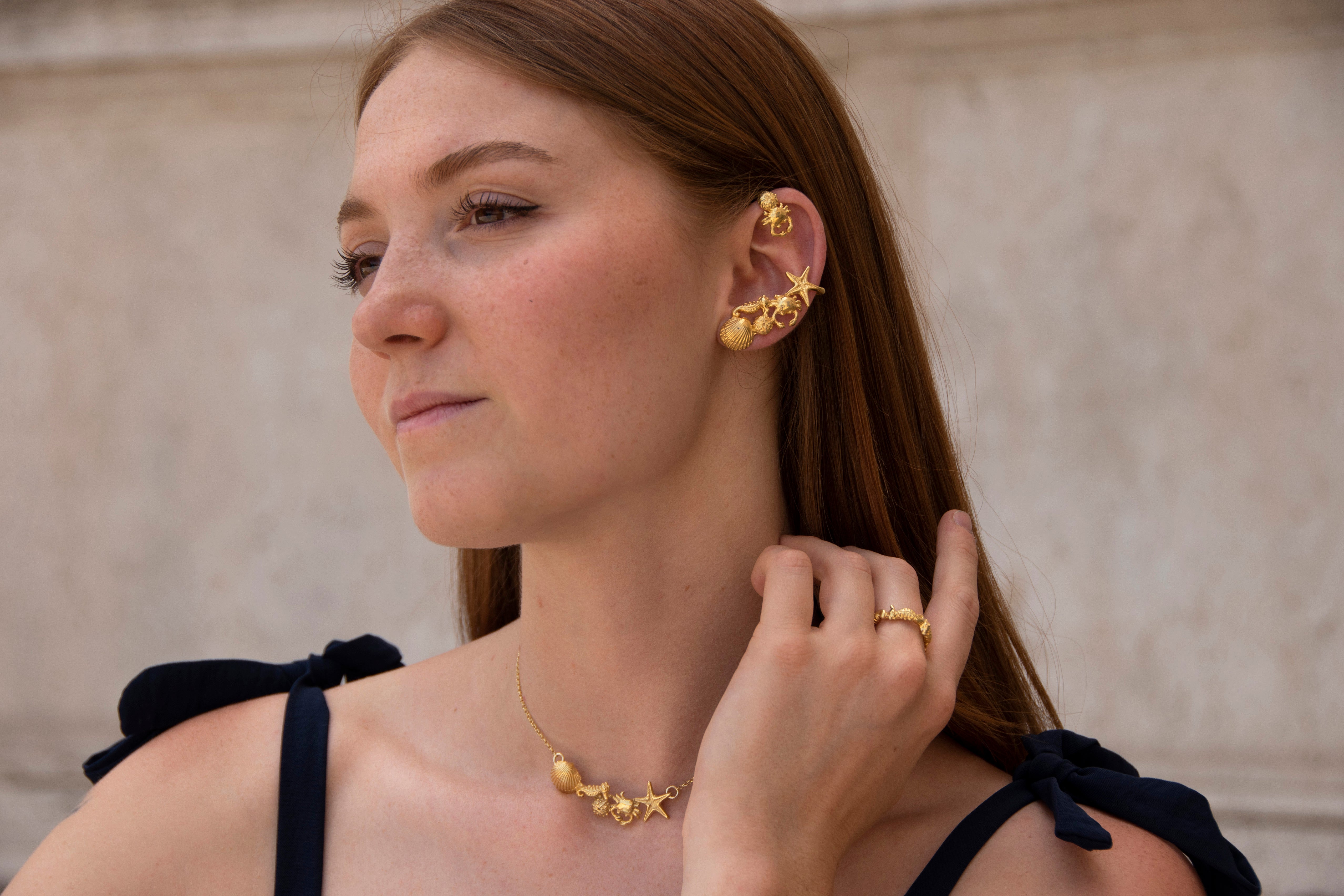 The Teti Necklace is a composition of starfish, shells, crabs and seahorses, made entirely by hand in 925 silver using the lost wax casting technique in every smallest detail.