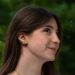 The Maxi ear cuff adapts perfectly to the shape of your ear. The rear wire is adjustable: you can stretch or tighten it according to your needs for a personalized fit. For ease of wearing, we recommend starting from the top of the ear, sliding it gently downwards and slightly pulling on the lobe to make the lower part adhere.