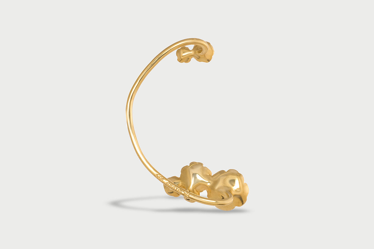 The Maxi ear cuff adapts perfectly to the shape of your ear. The rear wire is adjustable: you can stretch or tighten it according to your needs for a personalized fit. For ease of wearing, we recommend starting from the top of the ear, sliding it gently downwards and slightly pulling on the lobe to make the lower part adhere.