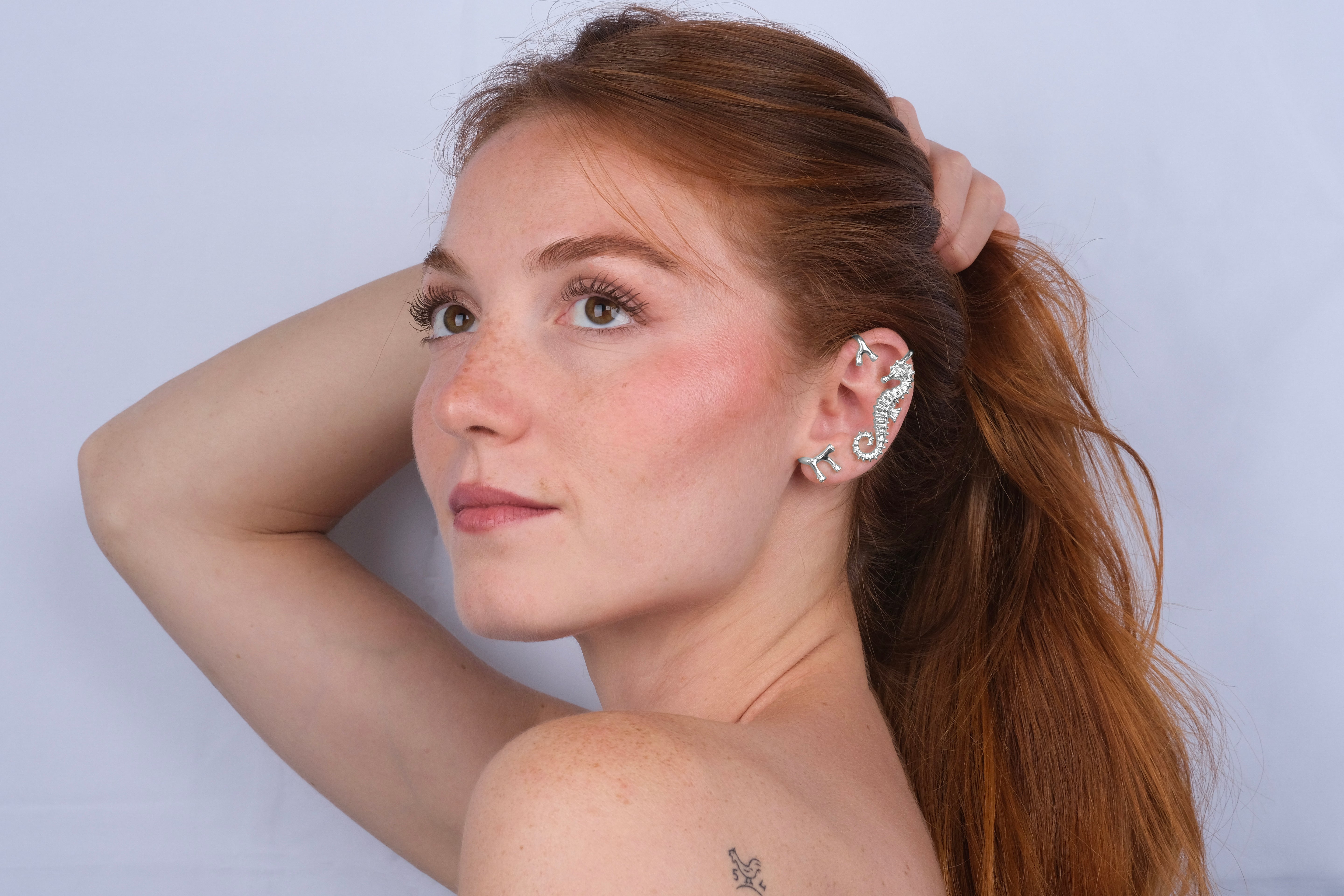 How to wear a maxi ear cuff? Maxi ear cuffs are designed to be worn without piercing the ear. To wear them, place the jewel on the upper part of the ear and slide it gently downwards. You can adjust it by slightly tugging on the lobe to make the lower part adhere better.
