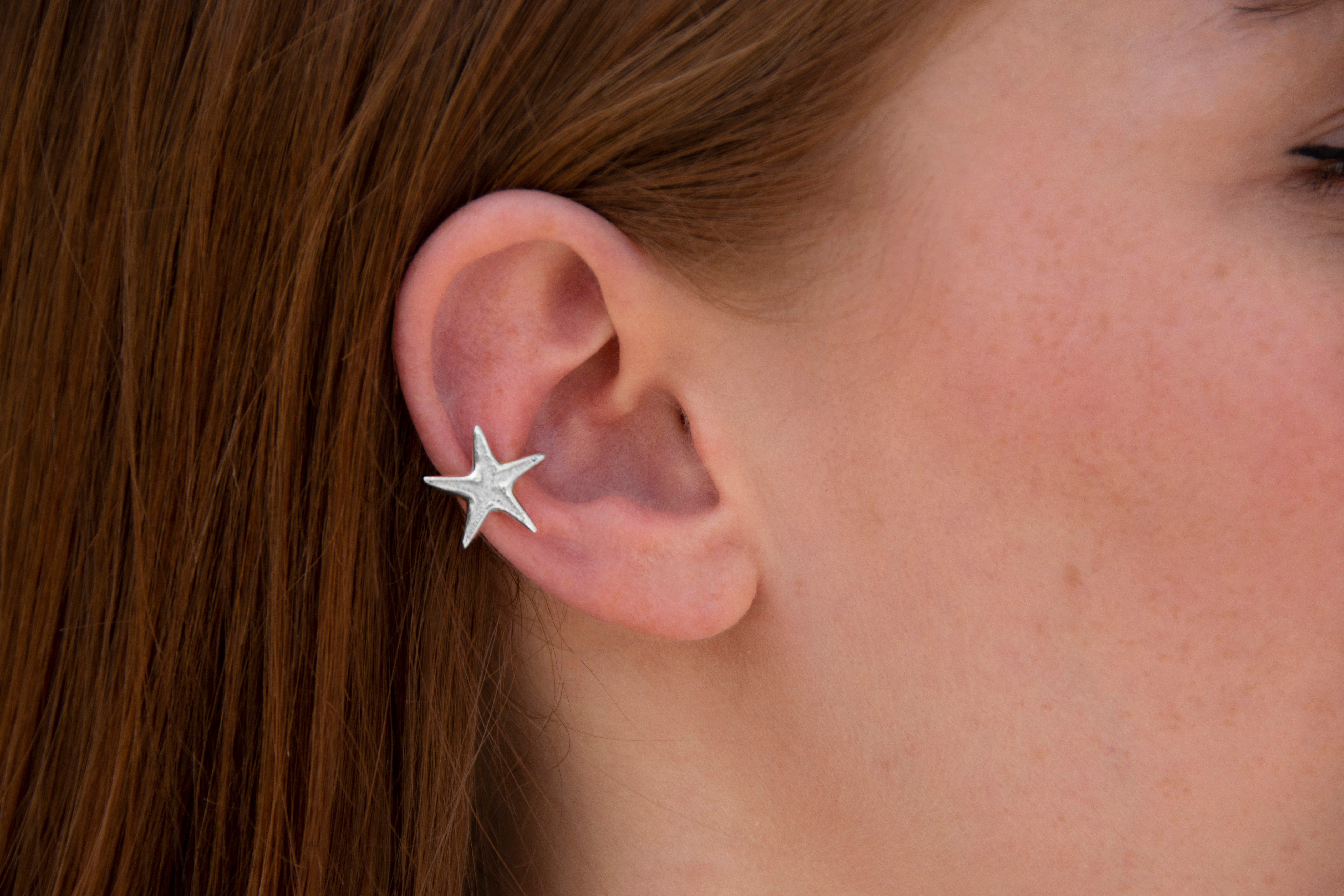 The Nereide Ear Cuff is a starfish made entirely by hand in 925 silver using the lost wax casting technique.