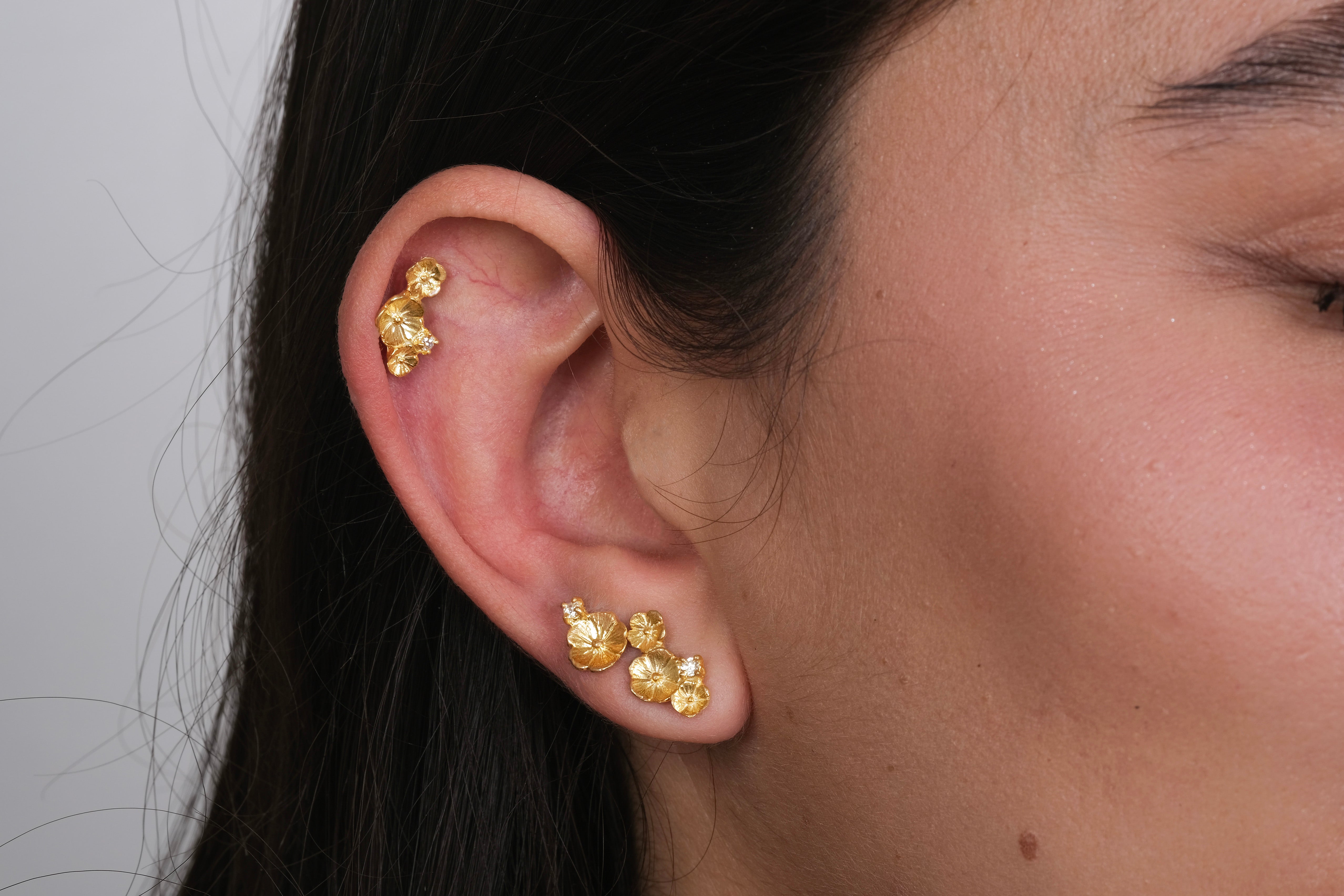 L'orecchino Altea, composto da una splendida composizioni di fiori, realizzato a mano in argento 925 tramite la tecnica della fusione a cera persa.
