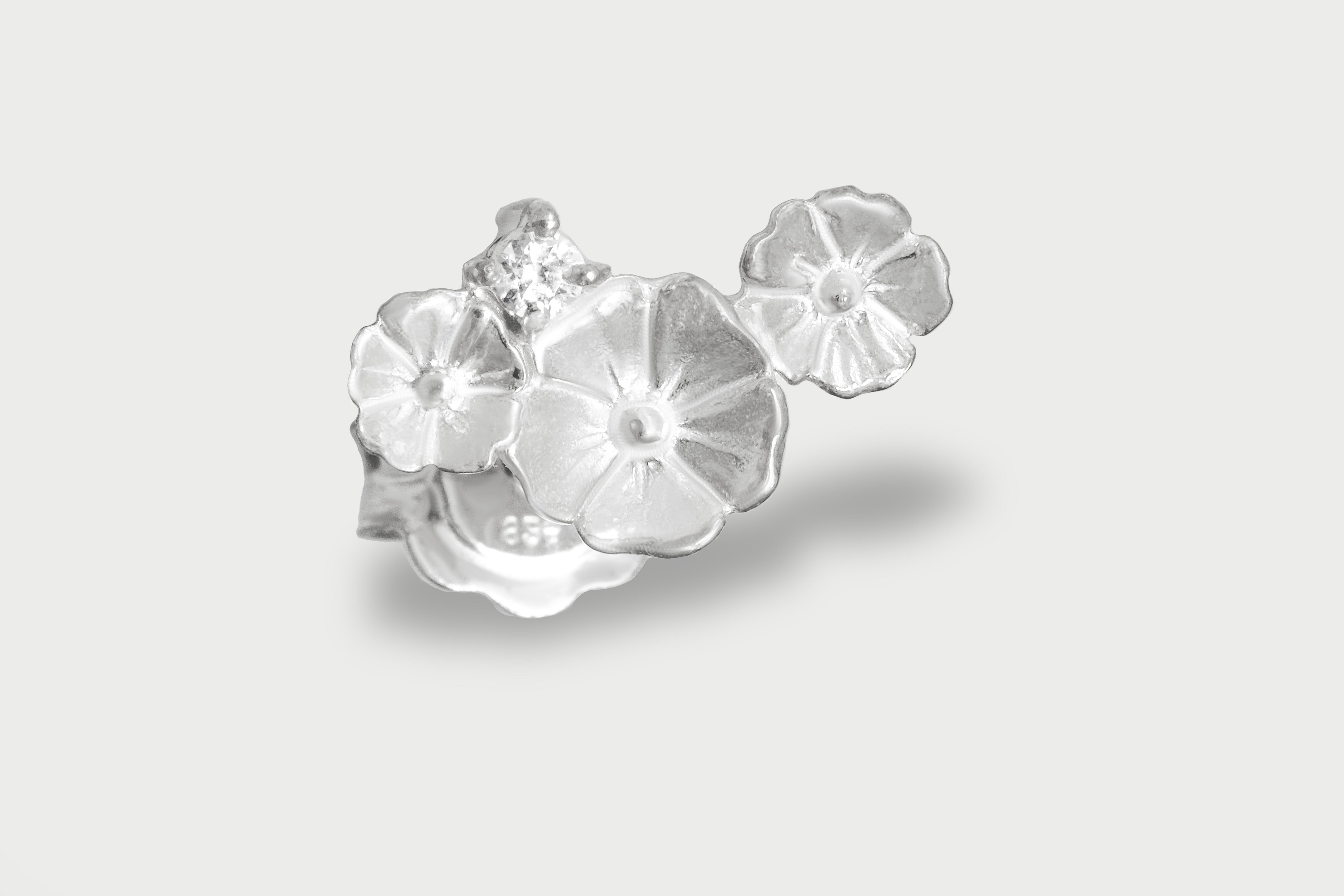 L'orecchino Altea, composto da una splendida composizioni di fiori, realizzato a mano in argento 925 tramite la tecnica della fusione a cera persa.