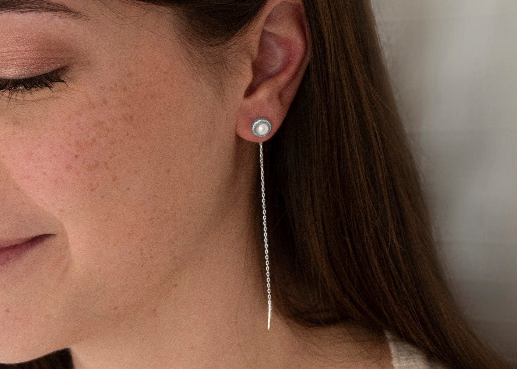 The Aura earring is handmade in 925 silver, embellished with river pearls.