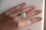 Bague avec fleur en argent 925 entièrement réalisée à la main avec la technique de la fonte à cire perdue, embellie avec des perles de rivière.