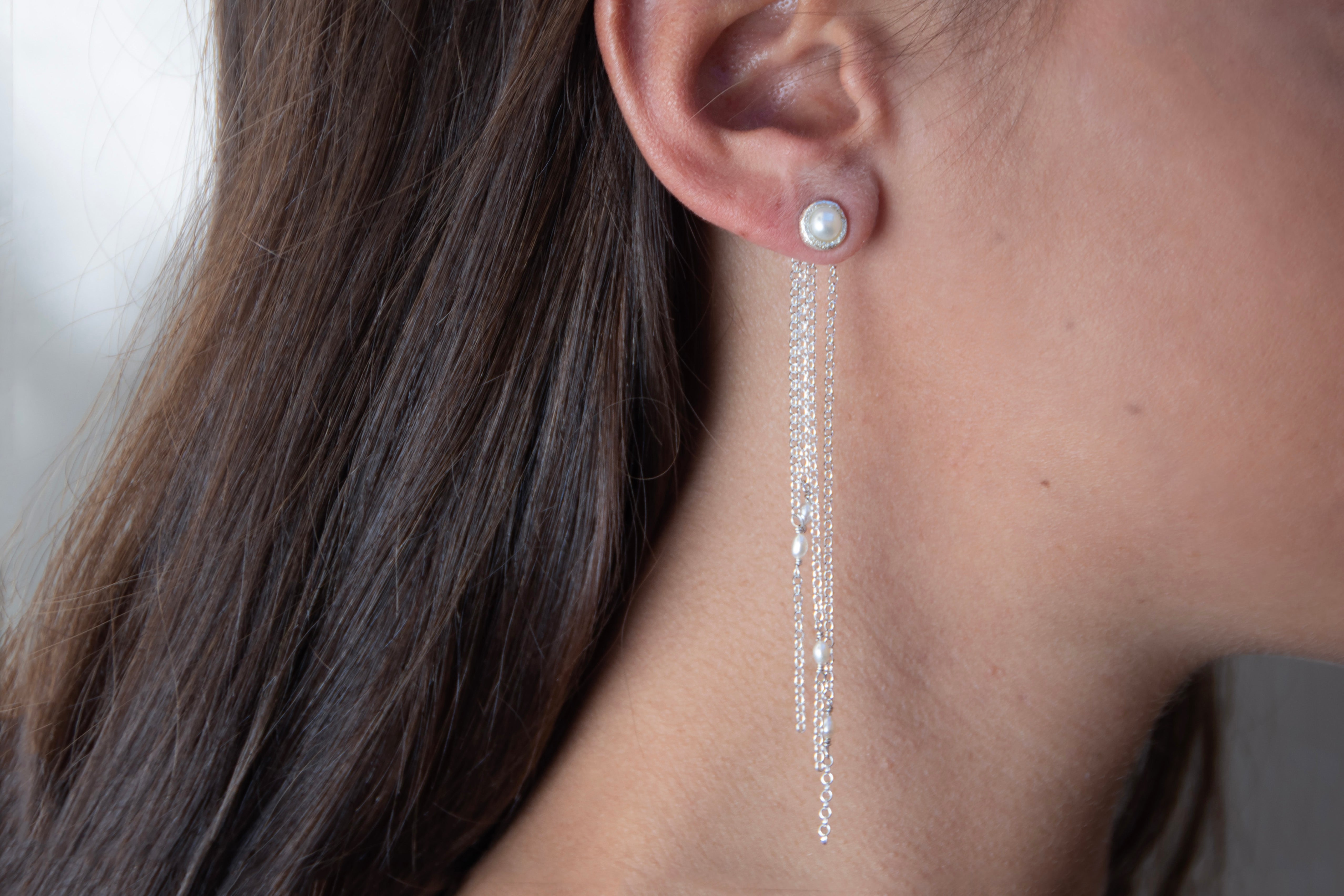 No, no puedes usar varias cadenas colgantes en un solo pendiente, ya que se necesitaría un pasador muy largo. Sin embargo, puedes usar una cadena en el primer agujero, otra en el segundo e incluso una tercera, creando un hermoso efecto cascada que aporta luz y movimiento a tu look.