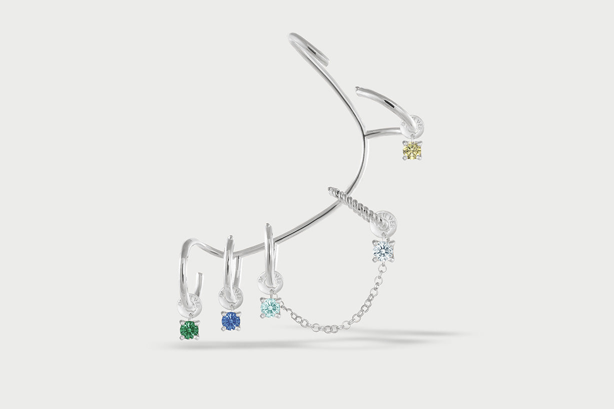 El Charm Luce está diseñado para nuestro Ear Cuff Multi-Hoop . Se encaja fácilmente en los primeros cinco aros del Ear Cuff, añadiendo un toque de brillo a tu look.
