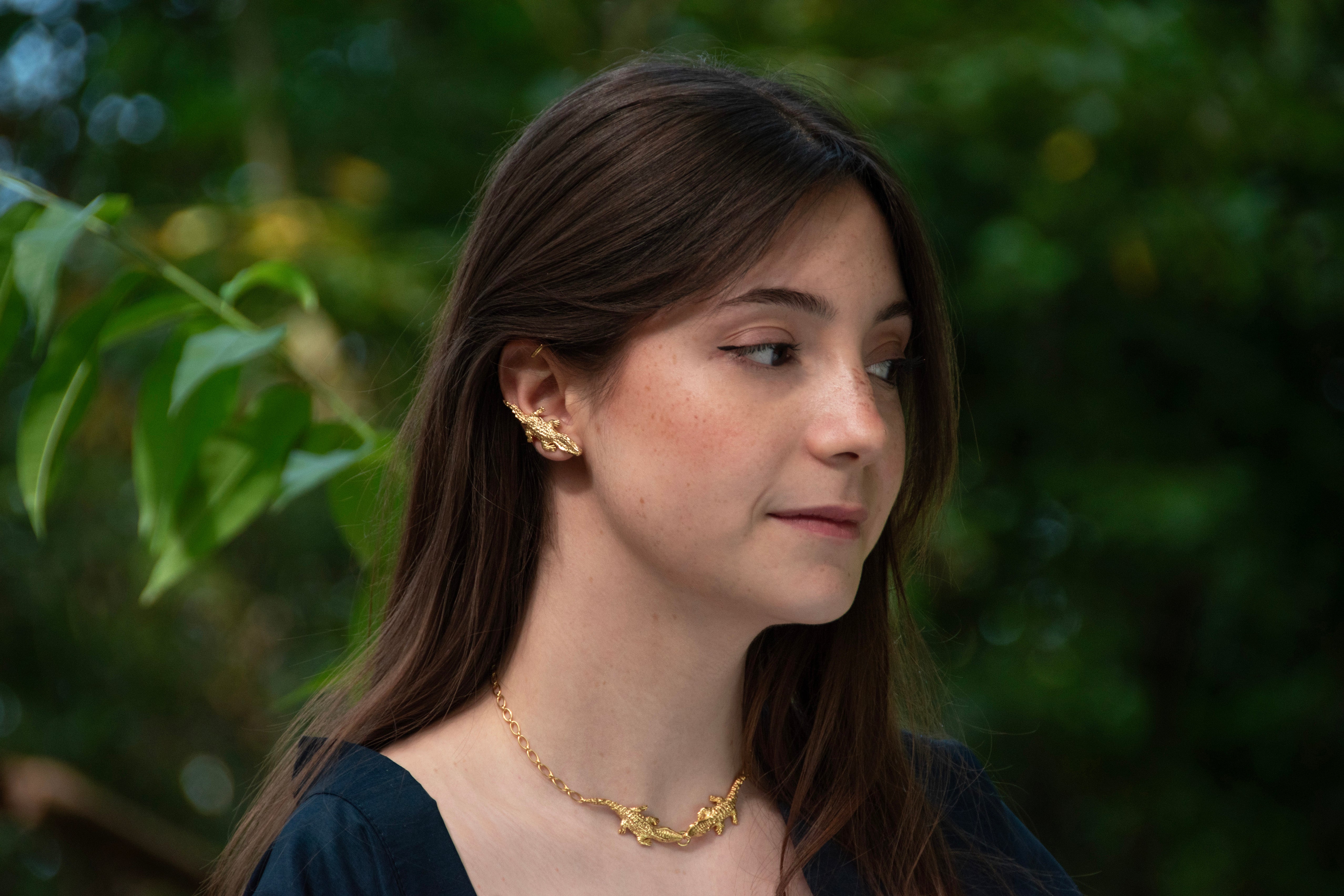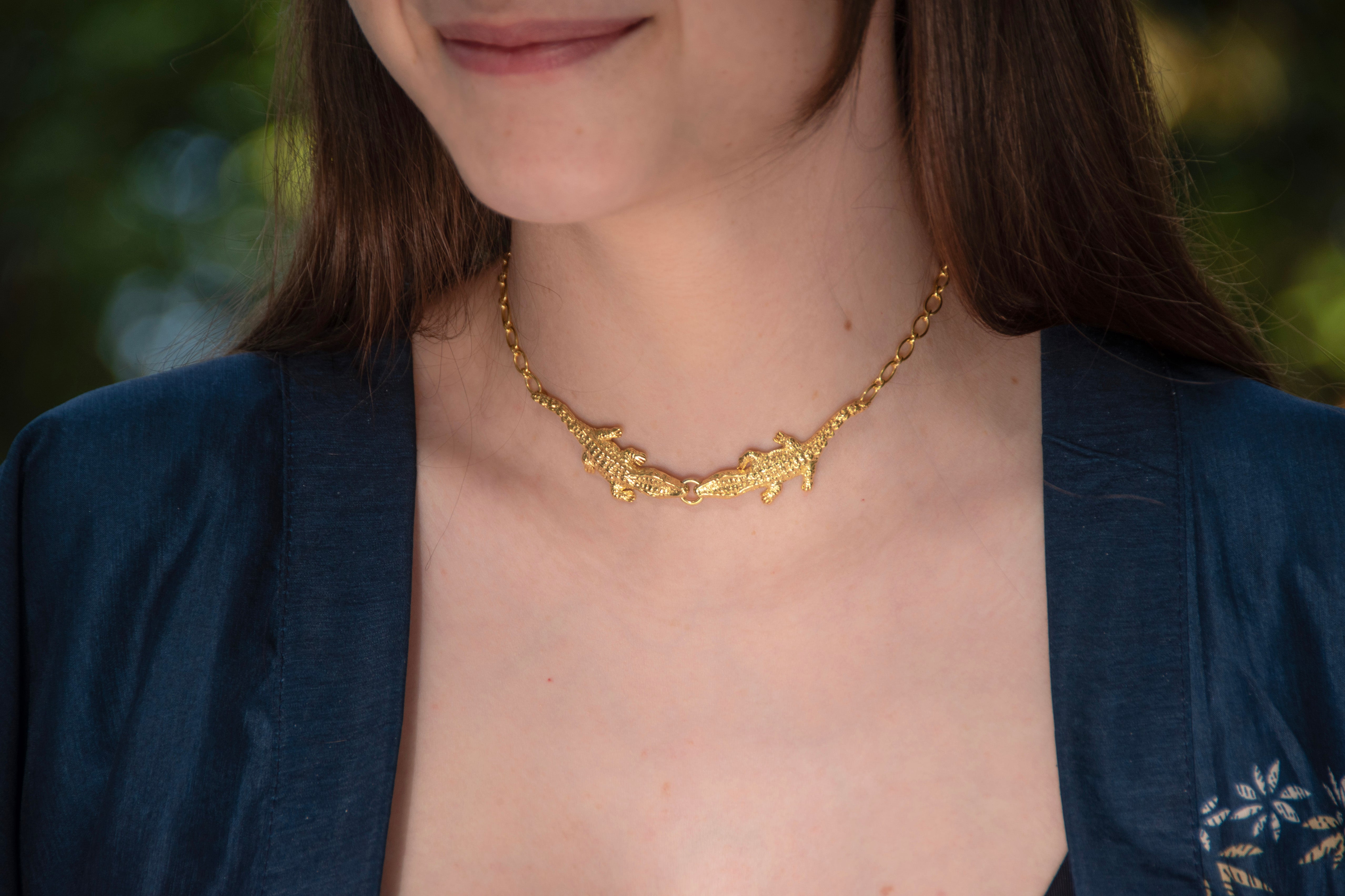 El Collar Coco está compuesto por dos cocodrilos realizados totalmente a mano en plata 925 mediante la técnica de fundición a la cera perdida.