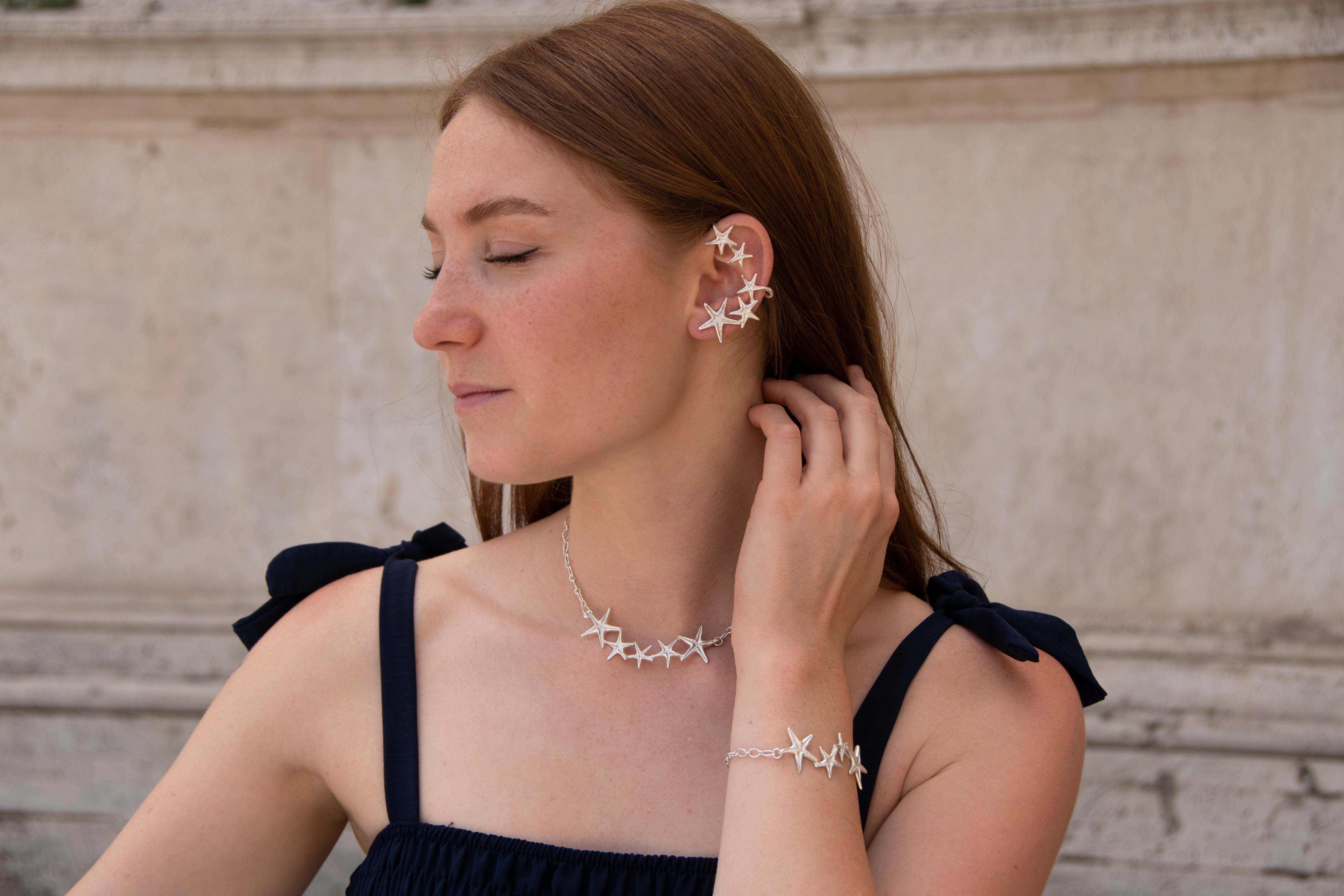 El Collar Nereide es una composición de estrellas de mar, realizada artesanalmente en plata 925 mediante la técnica de fundición a la cera perdida.