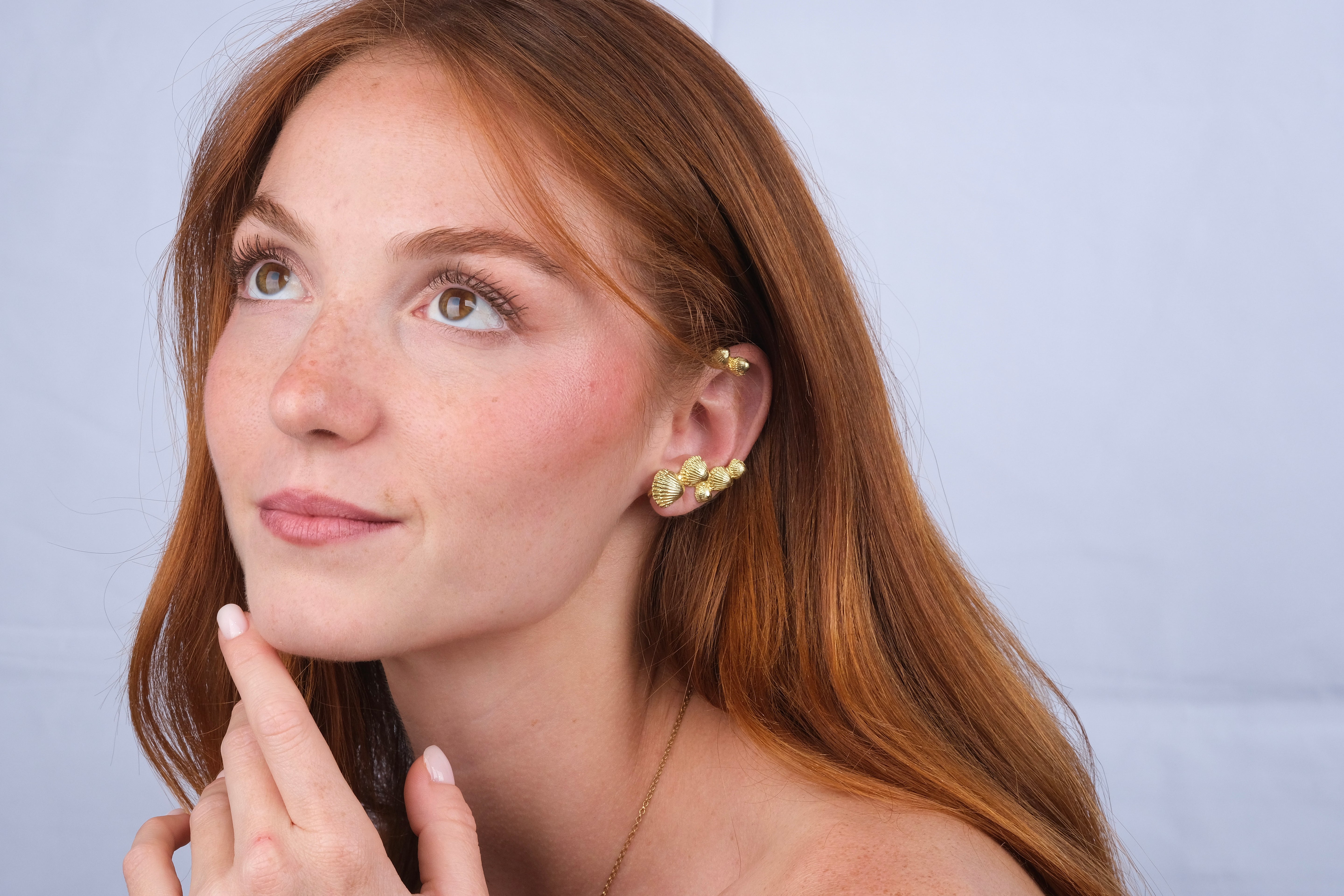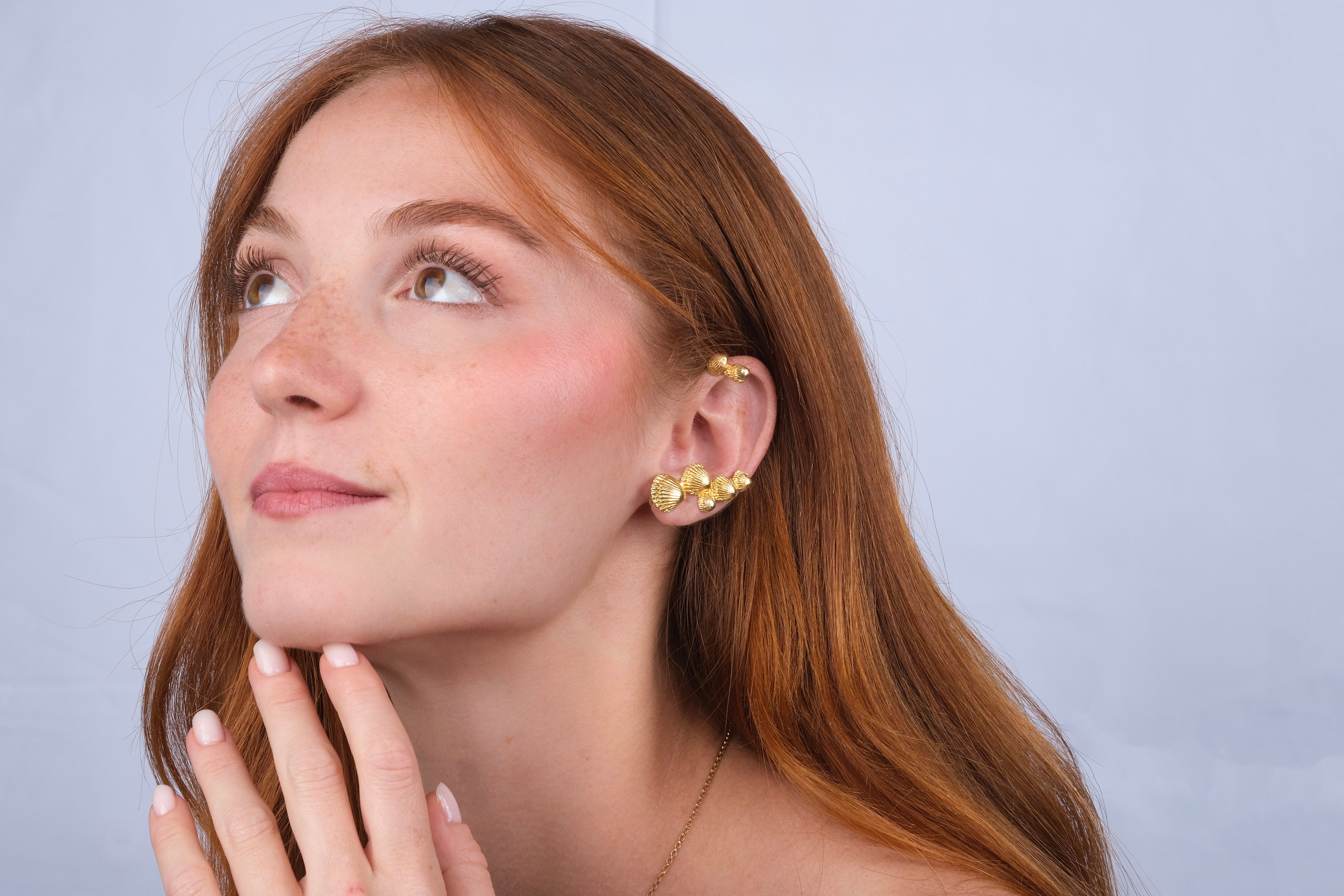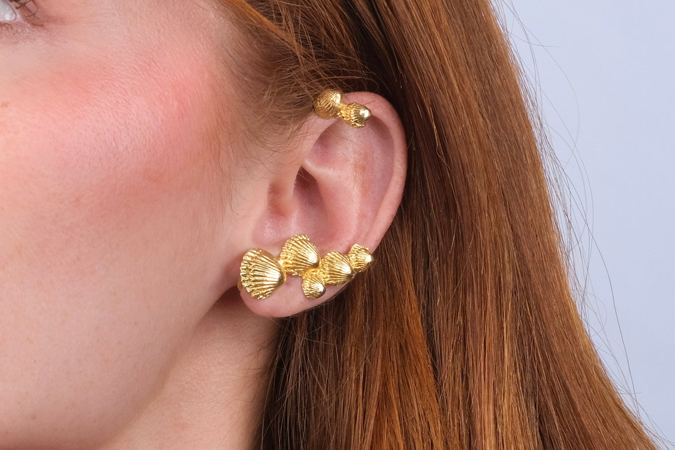 Una espléndida composición de conchas que envuelve elegantemente la oreja.