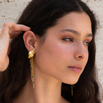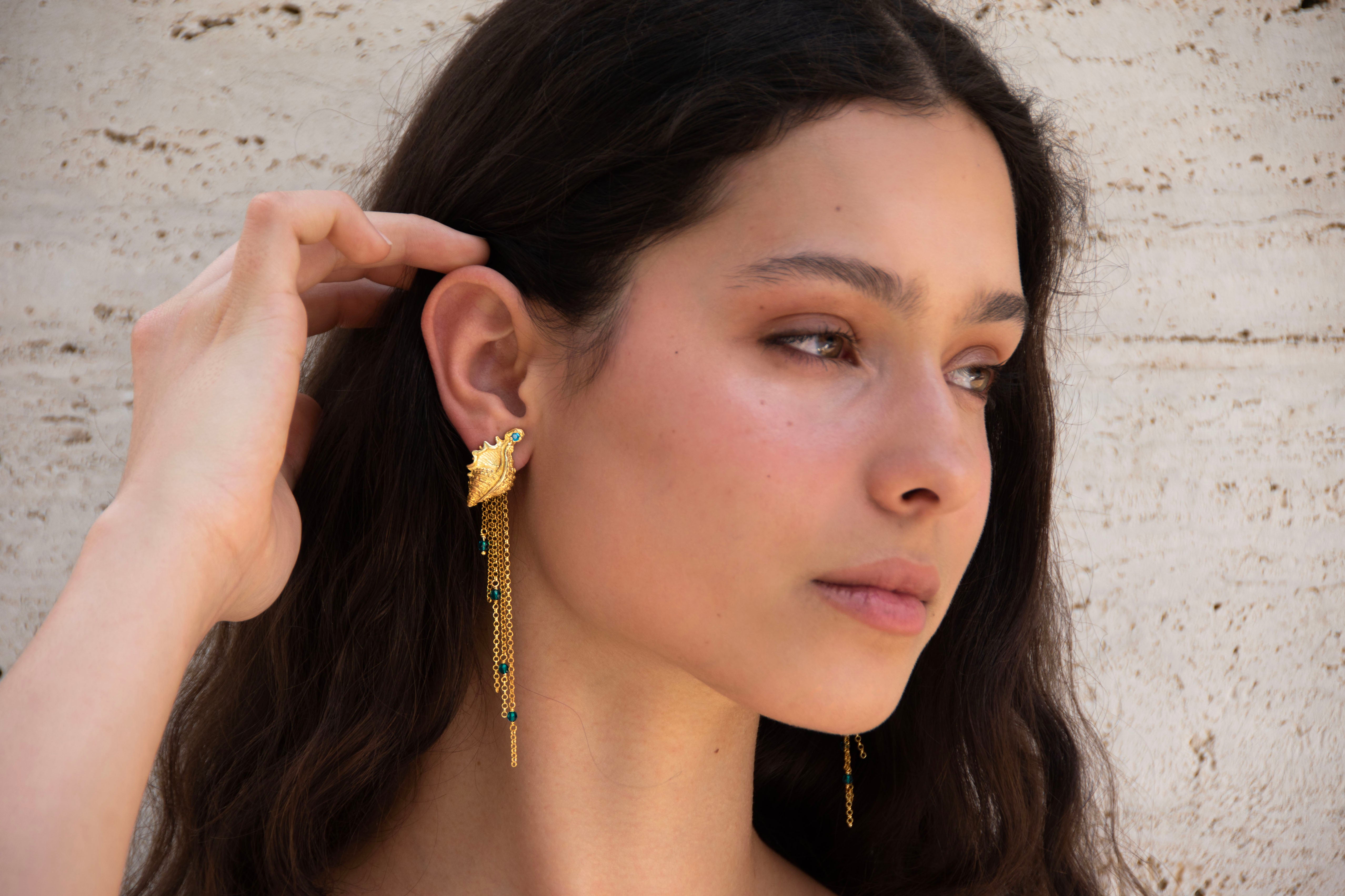 El pendiente Anfitrite representa una concha, realizada artesanalmente en plata 925 mediante la técnica de fundición a la cera perdida.