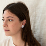 El pendiente Artemide representa una flor, elaborado artesanalmente en plata 925 mediante la técnica de fundición a la cera perdida.