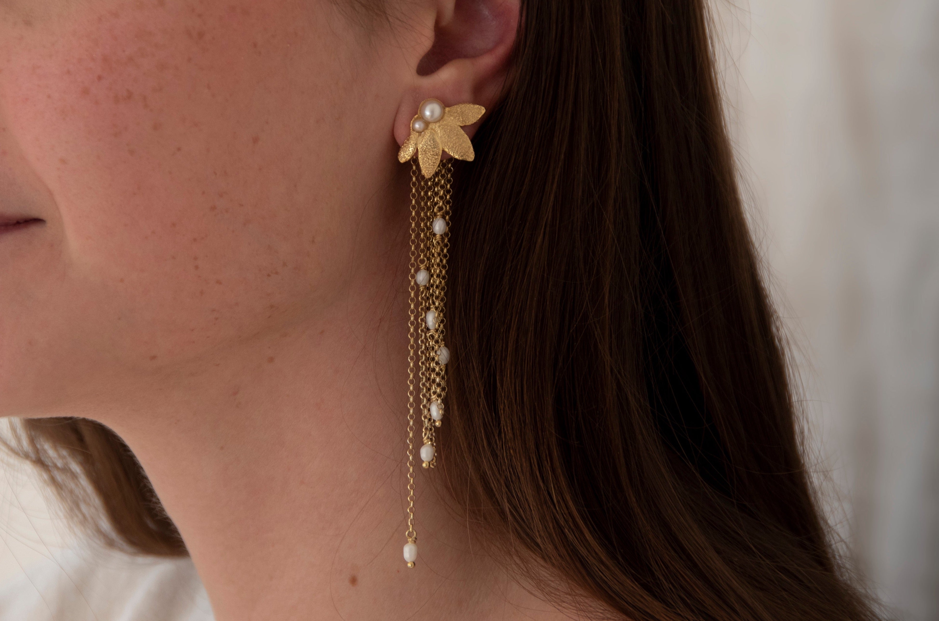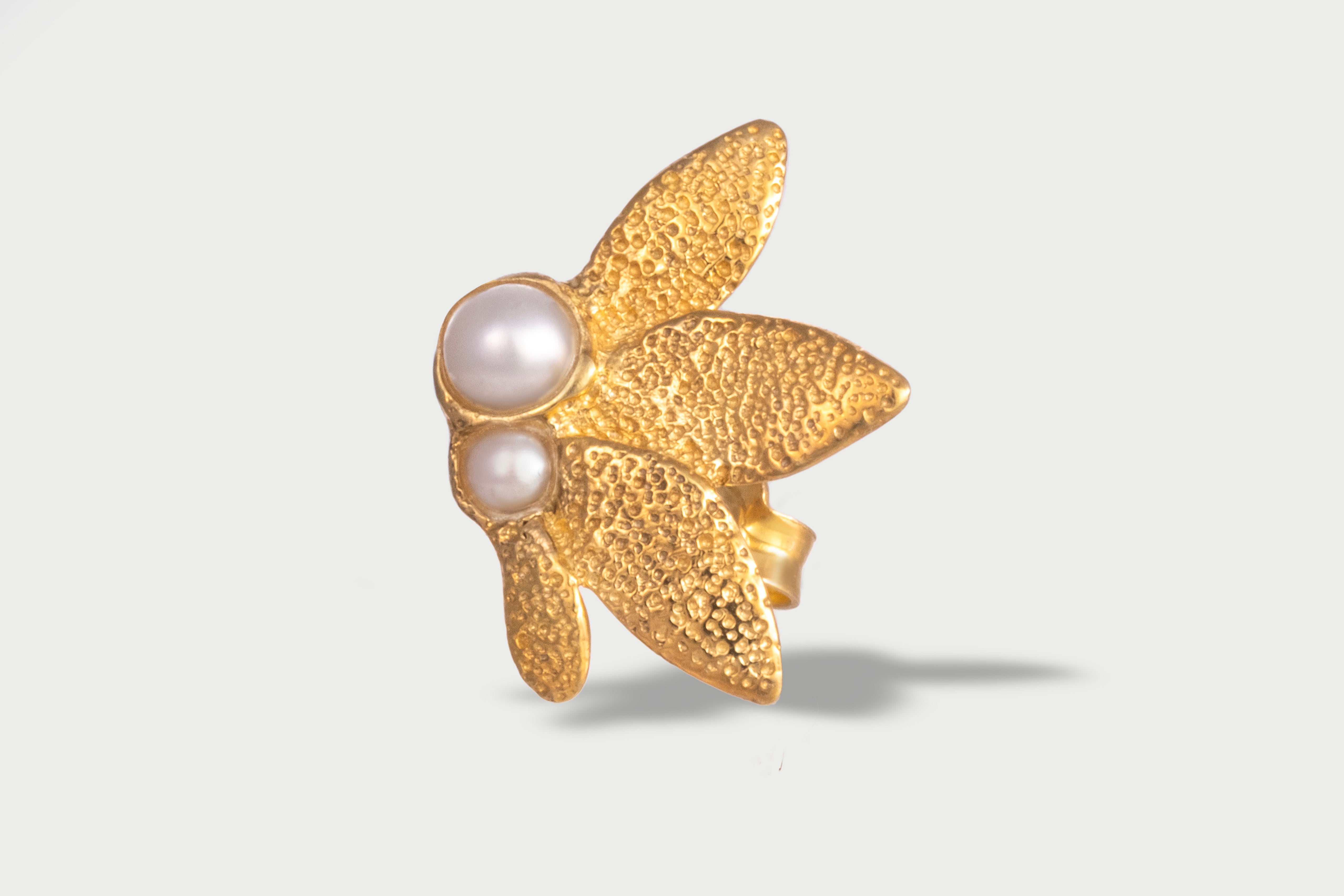 El pendiente Artemide representa una flor, elaborado artesanalmente en plata 925 mediante la técnica de fundición a la cera perdida.