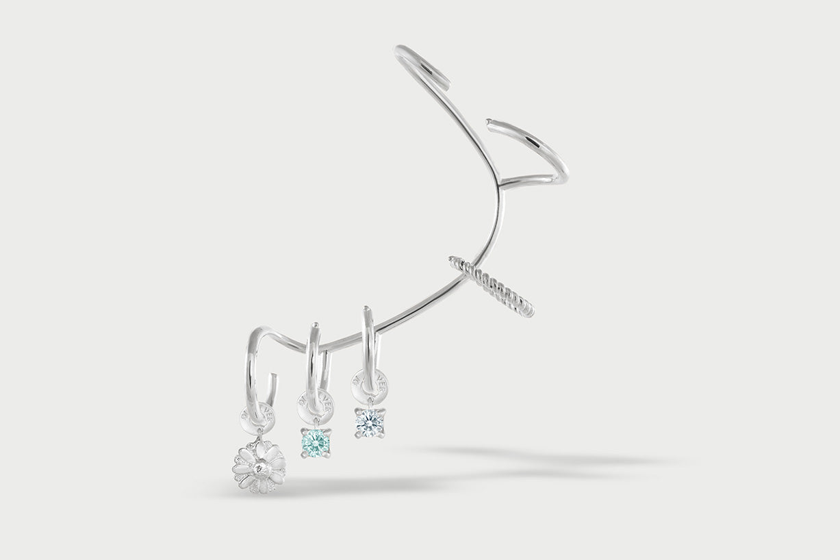 El Ear Cuff Multi Hoops es una joya única en plata 925, elaborada íntegramente a mano.